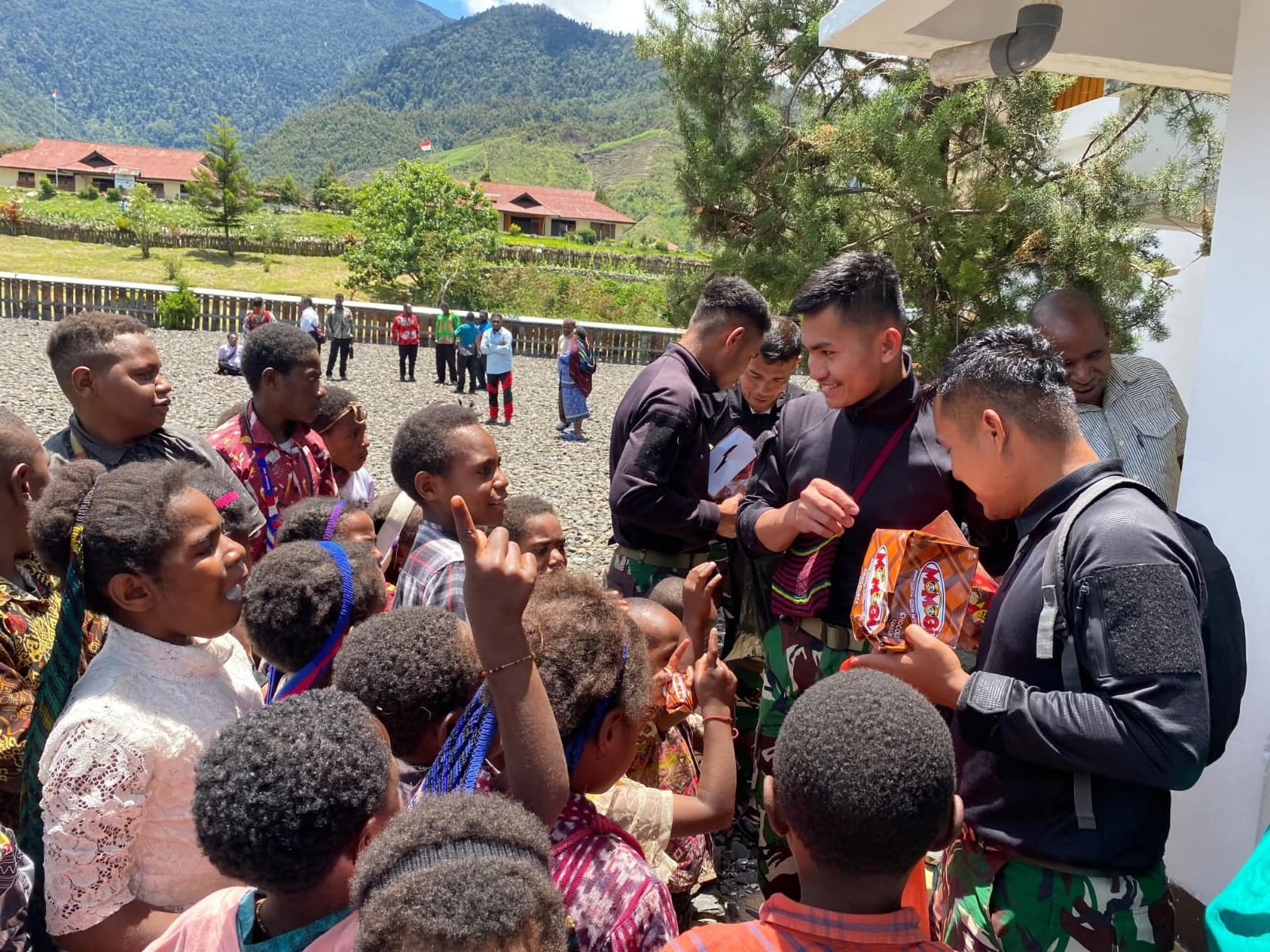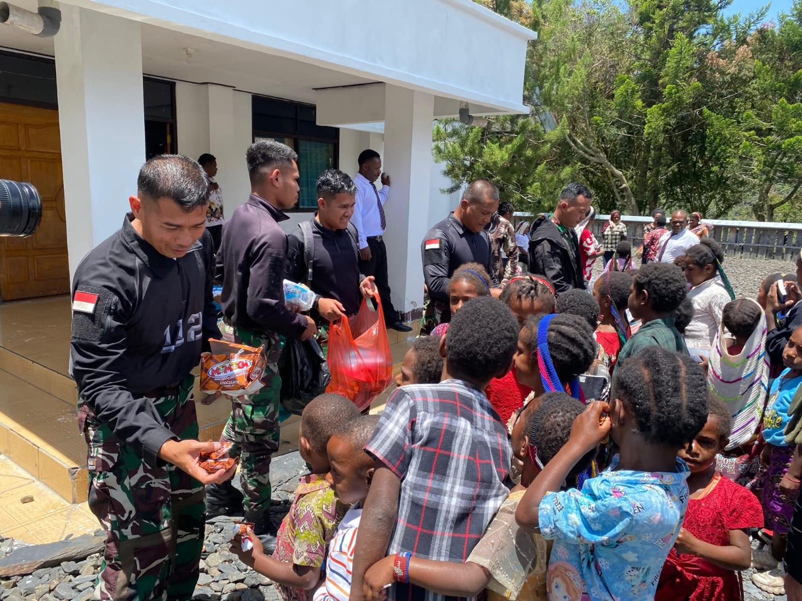 Tak hanya beribadah, para prajurit juga menunjukkan kepedulian dengan membagikan Alkitab kepada jemaat sebagai wujud dukungan terhadap pembinaan iman di wilayah pegunungan tengah Papua.