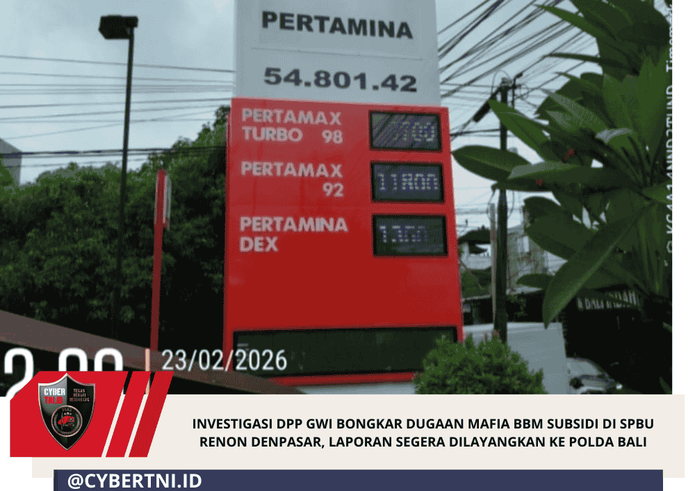CyberTNI.id | DENPASAR – Tim Investigasi Dewan Pimpinan Pusat Gabungan Wartawan Indonesia (DPP GWI) membongkar dugaan praktik mafia Bahan Bakar Minyak (BBM) bersubsidi jenis Pertalite di jantung Kota Denpasar. Praktik ilegal ini diduga kuat melibatkan kendaraan dengan tangki modifikasi yang melakukan pengisian berulang di satu titik SPBU.