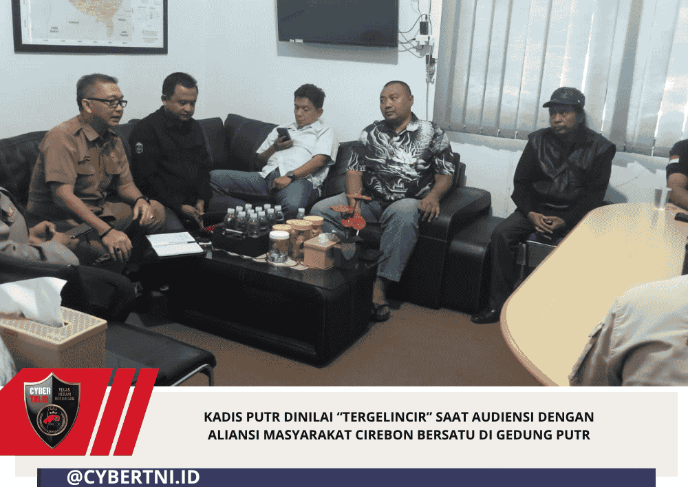 CyberTNI.id | Cirebon, 21 April 2026 – Audiensi antara Aliansi Masyarakat Cirebon Bersatu dengan Dinas PUTR Kabupaten Cirebon berlangsung di Gedung PUTR Kabupaten Cirebon pada Selasa (21/4/2026). Pertemuan tersebut disambut langsung oleh Kepala Dinas PUTR, Sekretaris Dinas PUTR, serta dihadiri unsur kepolisian dari Kasat Polres Sumber dan Kapolsek Talun beserta jajaran.