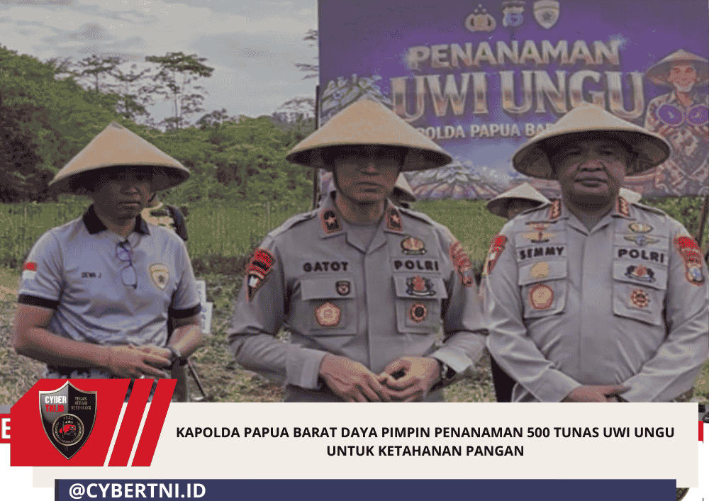 CyberTNI.id | Sorong PBD – Polda Papua Barat Daya menunjukkan komitmennya dalam memperkuat ketahanan pangan sekaligus melestarikan pangan lokal khas Papua melalui kegiatan penanaman 500 tunas Uwi ungu di lingkungan Mapolda, Jumat (27/2/2026).