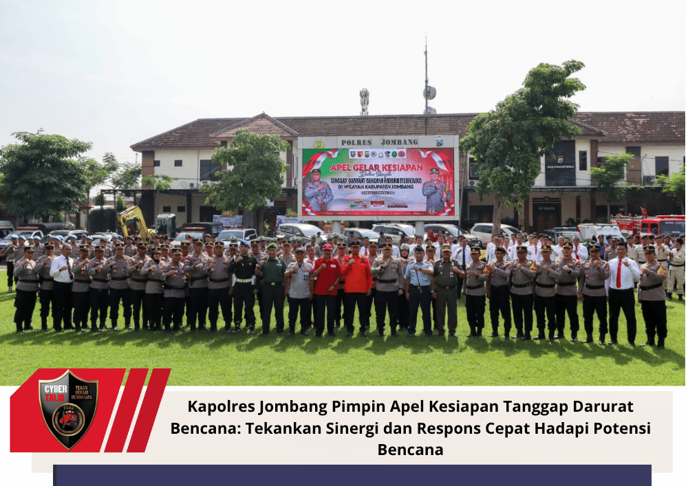 CyberTNI.id | Jombang, Rabu 5 November 2025 — Dalam rangka memastikan kesiapsiagaan menghadapi potensi bencana hidrometeorologi pada musim cuaca ekstrem, Polres Jombang melaksanakan kegiatan Apel gelar kesiapan tanggap darurat bencana Hidrometeorologi Tahun 2025, yang berlangsung di lapangan Mapolres Jombang pada Rabu, (5/11/2025) pagi.