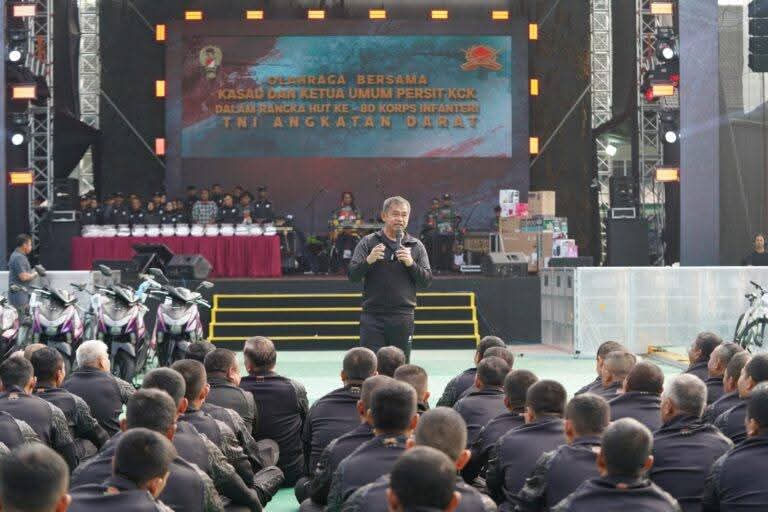 Hal tersebut disampaikan Kasad saat mengikuti olahraga bersama prajurit, PNS, dan anggota Persit Kartika Chandra Kirana, serta keluarga besar Pusat Kesenjataan Infanteri (Pussenif) dalam rangkaian peringatan HUT ke-80 Korps Infanteri di Markas Pussenif, Bandung, Jawa Barat, Jumat (10/10/2025).