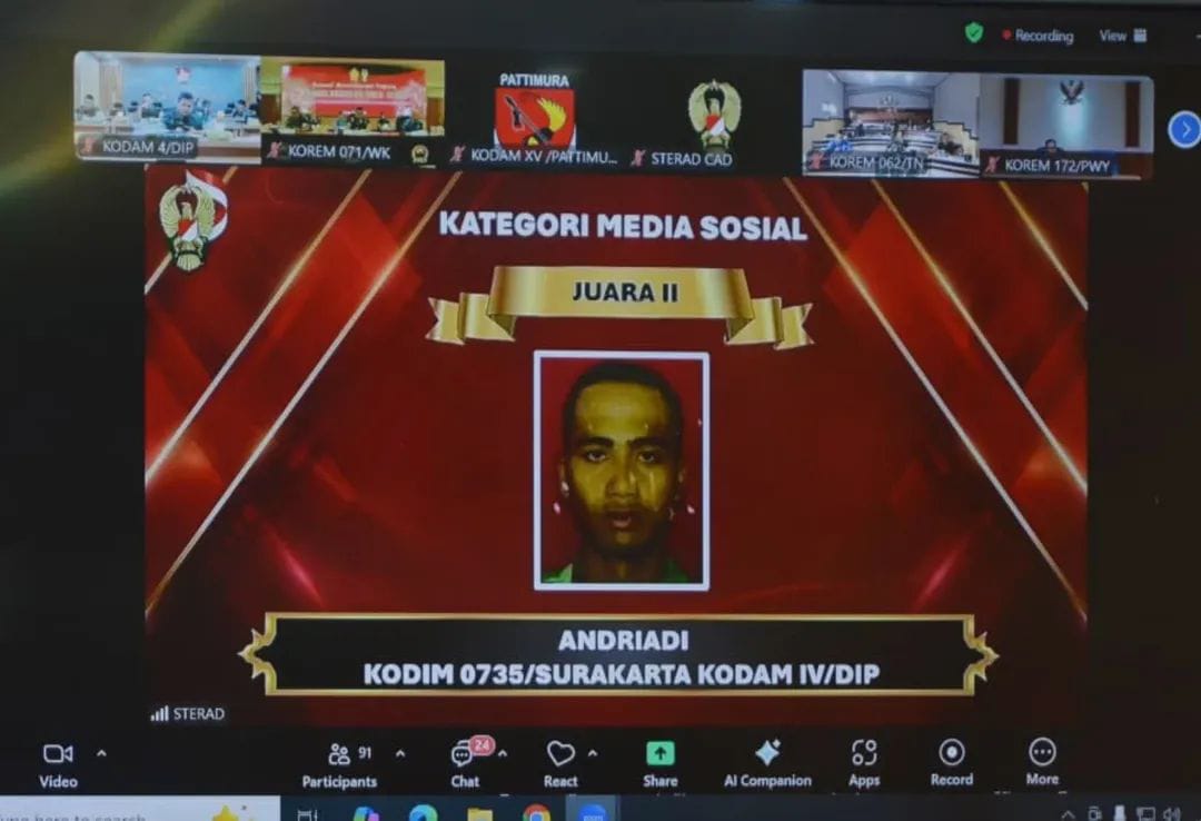 Rakornis TMMD ke-126 juga menjadi momen istimewa bagi Kodam IV/Diponegoro. Pada kesempatan tersebut, diumumkan hasil Lomba Dansatgas Terbaik dan Lomba Karya Jurnalistik (LKJ) TMMD ke-125 TA 2025. Kodam IV/Diponegoro berhasil menorehkan prestasi membanggakan di berbagai kategori. Juara Pertama Kategori Media Sosial diraih oleh Belinda Putri Sabrina Birton, S.Ked. dari platform TikTok wilayah Kodim 0722/Kudus, Korem 073/Makutarama, disusul Andriadi yang meraih Juara Kedua melalui YouTube wilayah Kodim 0735/Surakarta, Korem 074/Warastratama.
