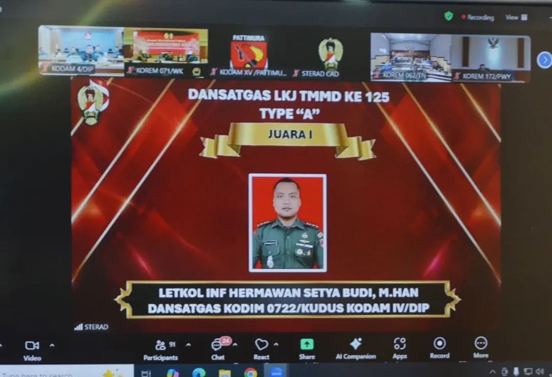 Sementara itu, Juara Pertama Dansatgas LKJ Type A sekaligus Juara Pertama Dansatgas Terbaik TMMD ke-125 Kategori Type A (APBD lebih dari 1,8 Triliun) diraih oleh Letkol Inf Hermawan Setya Budi, M.Han., Dansatgas TMMD Kodim 0722/Kudus, Korem 073/Makutarama.