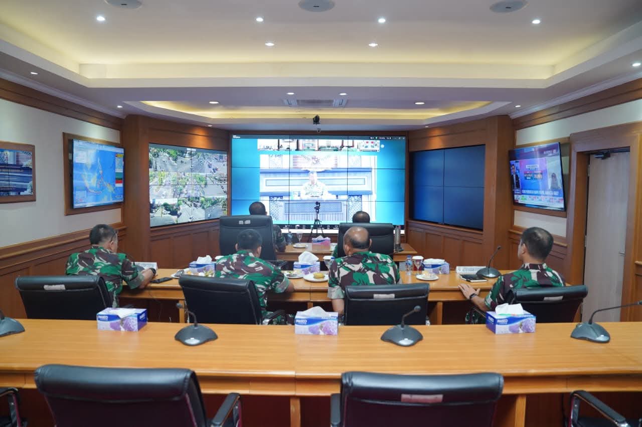 CyberTNI.id | Denpasar, Senin 13 Oktober 2025 – Kepala Staf Kodam IX/Udayana, Brigjen TNI Taufiq Hanafi, mengikuti Video Conference (Vidcon) dengan Wakil Panglima TNI, Jenderal TNI Tandyo Budi Revita, di Ruang Command Center Soekertidjo Makodam IX/Udayana, Senin 13 Oktober 2025
