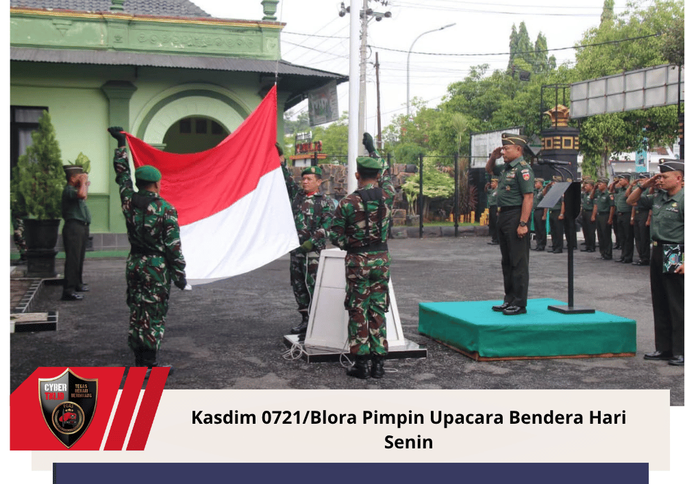 CyberTNI.id | BLORA, Senin 3 November 2025 – Komando Distrik Militer (Kodim) 0721/Blora melaksanakan upacara bendera mingguan yang rutin digelar setiap hari Senin. Pada kesempatan kali ini, Kepala Staf Kodim (Kasdim) 0721/Blora, Mayor Inf Bani, bertindak sebagai Inspektur Upacara (Irup).