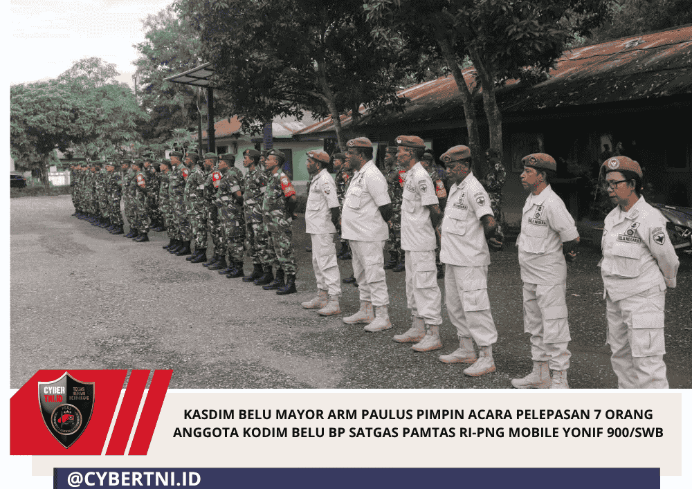 CyberTNI.id | BELU — Kepala Staf Kodim 1605/Belu Mayor Arm Paulus memimpin apel pelepasan 7 orang anggota Kodim 1605/Belu yang akan melaksanakan Bantuan Personil (BP) Satuan Tugas (Satgas) Pamtas RI-PNG Mobile Yonif 900/SWB yang berlangsung di lapangan apel Makodim 1605/Belu, Kamis (9/4/2026).
