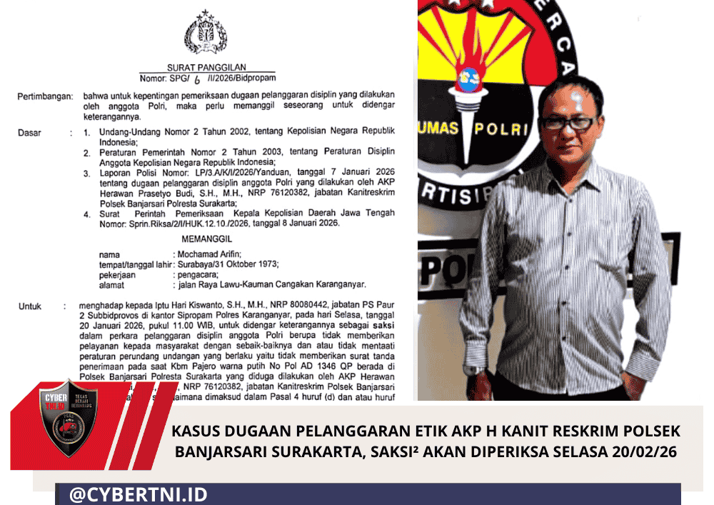 KASUS DUGAAN PELANGGARAN ETIK AKP H KANIT RESKRIM POLSEK BANJARSARI SURAKARTA, SAKSI² AKAN DIPERIKSA SELASA 20/02/26