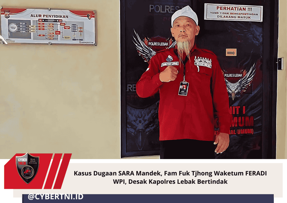 CyberTNI.id | Lebak – Penanganan laporan dugaan ujaran kebencian bermuatan Suku, Agama, Ras, dan Antargolongan (SARA) yang dilaporkan Fam Fuk Tjhong terhadap Oknum anggota DPRD Kabupaten Lebak dinilai berjalan lamban. Atas kondisi tersebut, Fam Fuk Tjhong Wakil Ketua Umum FERADI WPI mendatangi Polres Lebak, Selasa (6/1/2026), guna mendesak Kapolres Lebak agar segera mengambil langkah hukum tegas.