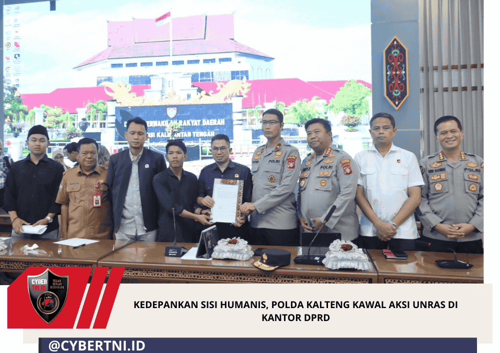 CyberTNI.id | Palangka Raya – Kepolisian Daerah Kalimantan Tengah (Polda Kalteng) melakukan pengamanan aksi unjuk rasa dari sejumlah mahasiswa yang tergabung dalam Aliansi Reformasi Polri (AROMI) di depan Kantor DPRD Kalteng, Jl. S.Parman, Kota Palangka Raya, Senin (2/3/2026).