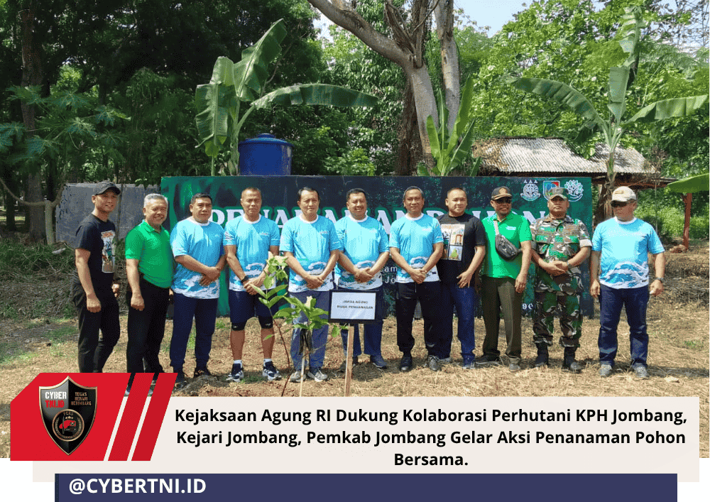 CyberTNI.id | JOMBANG, (19/10/2025) —Perhutani Kesatuan Pemangkuan Hutan (KPH) Jombang, kolaborasi antara Kejaksaan Negri (Kejari) Jombang dan Pemerintah Kabupaten (Pemkab) Jombang, Gelar penanaman bersama Kejaksaan Agung Republik Indonesia (RI), sebagai bentuk dukungan kelestarian hutan, bertempat di Wana wisata Sumberboto wilayah Resort Pemangkuhan Hutan ( RPH) Gempol, Bagian Kesatuan Pemangkuan Hutan (BKPH) Gedangan, administratif masuk Desa Japanan, Kecamatan Mojowarno, Jombang,” pada minggu (19/10)