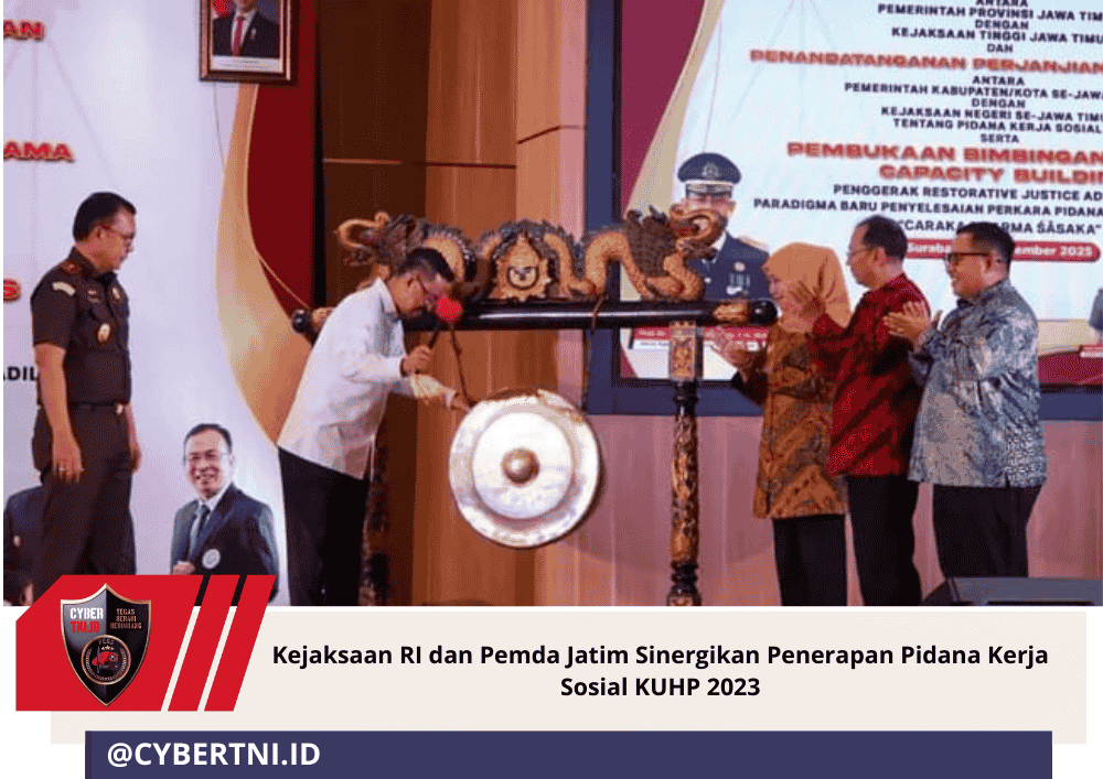 CyberTNI.id | SURABAYA,Senin (15/12/2025) — Kejaksaan Republik Indonesia menjalin sinergi dengan Pemerintah Daerah se-Jawa Timur dalam rangka mempersiapkan penerapan pidana kerja sosial sebagaimana diatur dalam Undang-Undang Nomor 1 Tahun 2023 tentang Kitab Undang-Undang Hukum Pidana (KUHP) yang mulai berlaku tahun 2026.