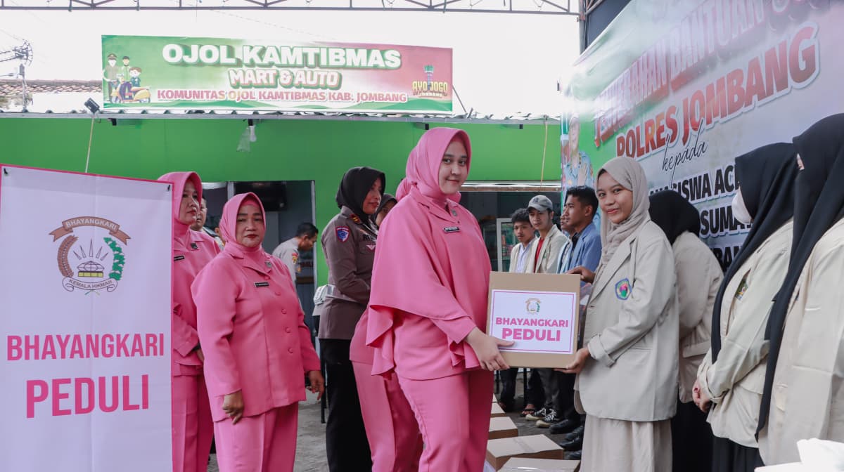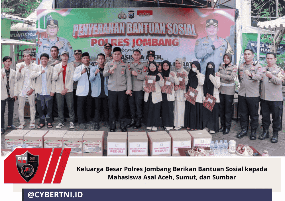 CyberTNI.id | Jombang – Keluarga Besar Polres Jombang melaksanakan kegiatan pemberian bantuan sosial (bansos) kepada mahasiswa asal Aceh, Sumatera Utara, dan Sumatera Barat yang sedang menempuh pendidikan di Kabupaten Jombang. Kegiatan tersebut dilaksanakan pada Jumat, (19/12/2025), siang, bertempat di Posko Ojol, Jl. KH. Hasyim Asy’ari No. 1, Desa Kaliwungu, Kecamatan Jombang.
