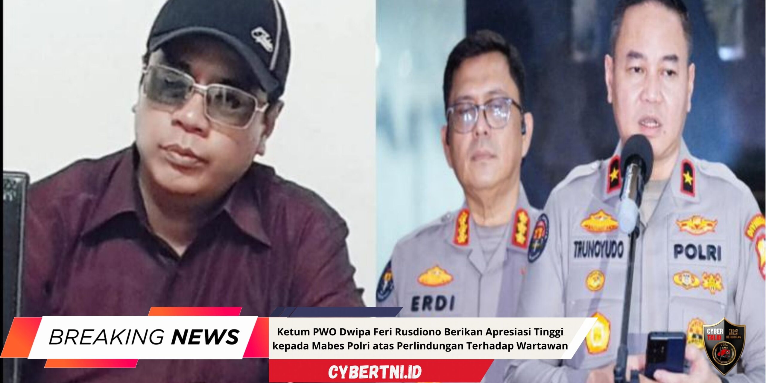 CyberTNI.id | Jakarta, Selasa 26 Agustus 2025 — Ketua Umum Persatuan Wartawan Online Dwipantara (PWO Dwipa ) Feri Rusdiono memberikan apresiasi tinggi kepada Mabes Polri yang telah mengeluarkan imbauan kepada seluruh jajaran kepolisian, mulai dari Polda hingga Polsek, untuk melindungi kerja wartawan yang bertugas meliput peristiwa.