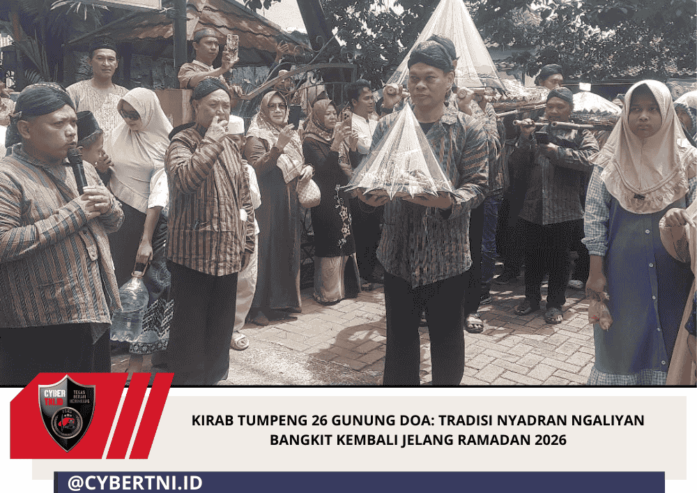 CyberTNI.id | Semarang — Suasana khidmat menyelimuti Kelurahan Ngaliyan, Kota Semarang, ketika warga menggelar tradisi Nyadran atau Sadran pada Minggu, 8 Februari 2026. Puncak acara ditandai dengan kirab megah 26 gunungan tumpeng yang diarak dari pendopo kelurahan menuju Makam Giriloyo, sebagai simbol penghormatan kepada leluhur sekaligus doa bersama menyambut bulan suci Ramadan.