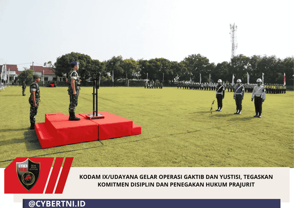 CyberTNI.id | Denpasar – Kodam IX/Udayana kembali menunjukkan komitmen kuatnya dalam membangun prajurit yang disiplin, profesional, dan taat hukum. Komitmen tersebut ditegaskan melalui Upacara Gelar Pasukan Operasi Penegakan Ketertiban (Gaktib) dan Operasi Yustisi Polisi Militer TNI TA 2026 yang dipimpin langsung Pangdam IX/Udayana, Mayjen TNI Piek Budyakto, di Lapangan Makorem 163/Wira Satya, Jalan PB. Sudirman, Denpasar, Jumat (20/2/2026).