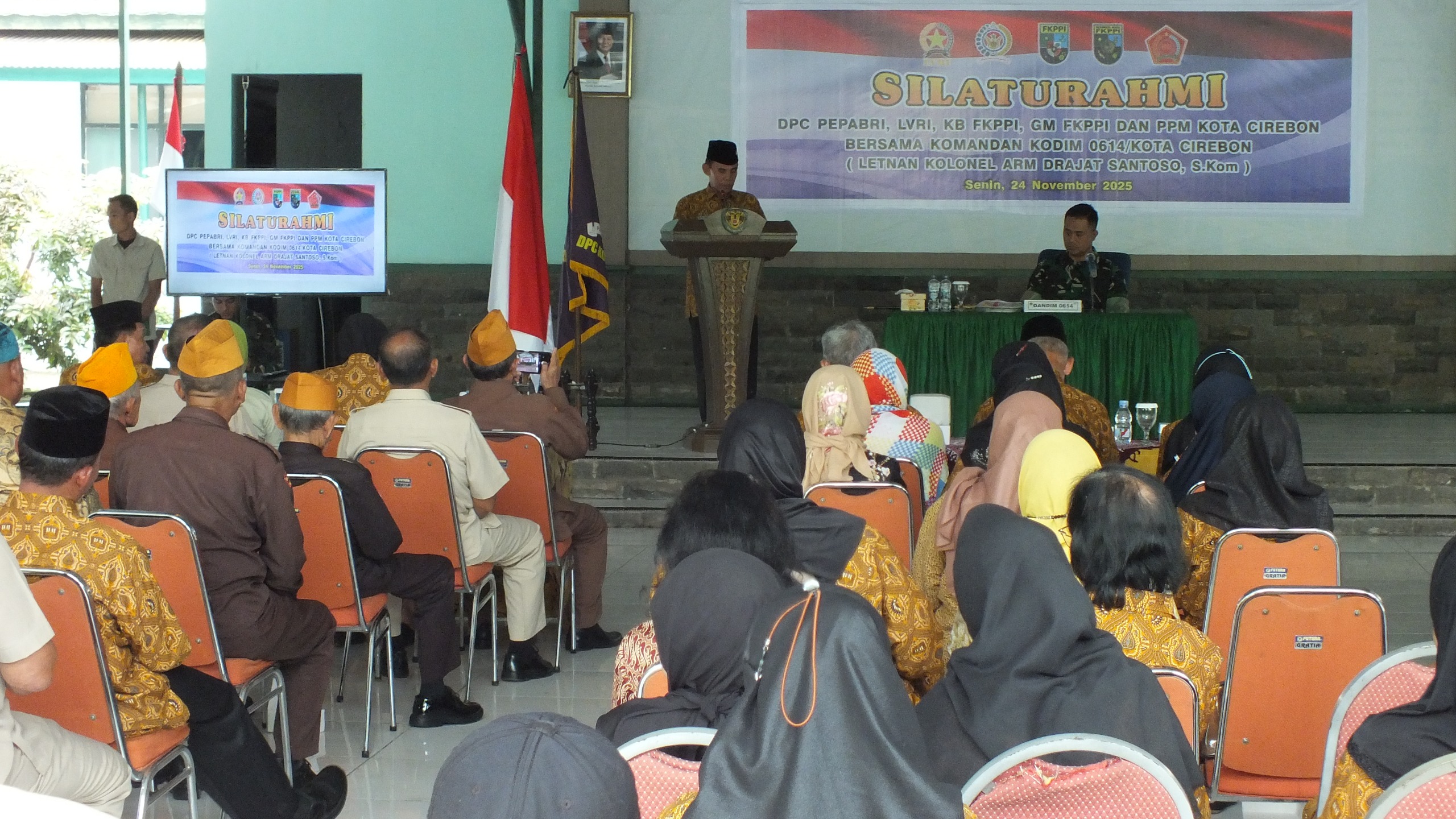CyberTNI.id | Kota Cirebon, (Senin, 24/11/2025) — Kodim 0614/Kota Cirebon menggelar acara silaturahmi bersama Keluarga Besar TNI (KBT) yang berlangsung di Pendopo Makodim 0614/Kota Cirebon. Kegiatan ini dihadiri oleh berbagai organisasi yang tergabung dalam Keluarga Besar TNI, antara lain KB PEPABRI, LVRI, KB FKPPI, GM FKPPI, serta PPM Kota Cirebon.