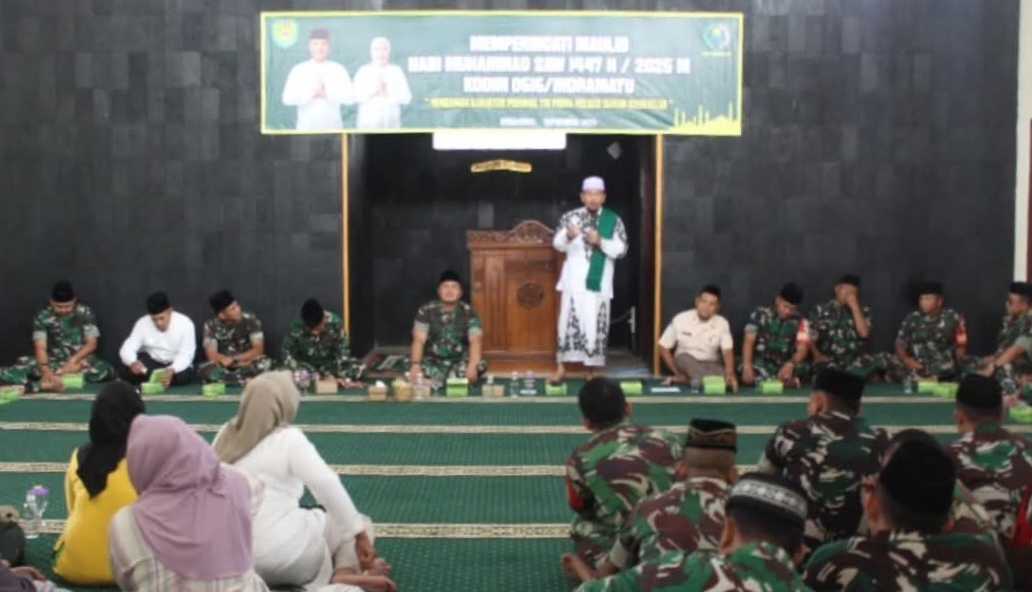 CyberTNI.id |Indramayu, Jumat 19 September 2025 — Bertempat di Masjid Nurul Haq Kodim 0616/Indramayu, Jl. Gatot Subroto No. 01 Desa Pekandangan, Kec./Kab. Indramayu, Kodim 0616 Indramayu melaksanakan kegiatan Peringatan Maulid Nabi Muhammad SAW 1447 H/2025 M dengan tema “MEMBANGUN KARAKTER PERSONEL TNI PRIMA MELALUI SUNNAH RASULULLAH”, pada hari Jum’at 19/09/2025.