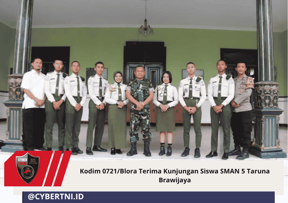 CyberTNI.id | Blora, Senin 20 Oktober 2025 – Kodim 0721/Blora menerima kunjungan dari siswa-siswi SMAN 5 Taruna Brawijaya di Markas Kodim 0721/Blora pada Senin (20/10). Rombongan disambut langsung oleh Komandan Kodim 0721/Blora yang diwakili oleh Kasdim Mayor Inf Bani.