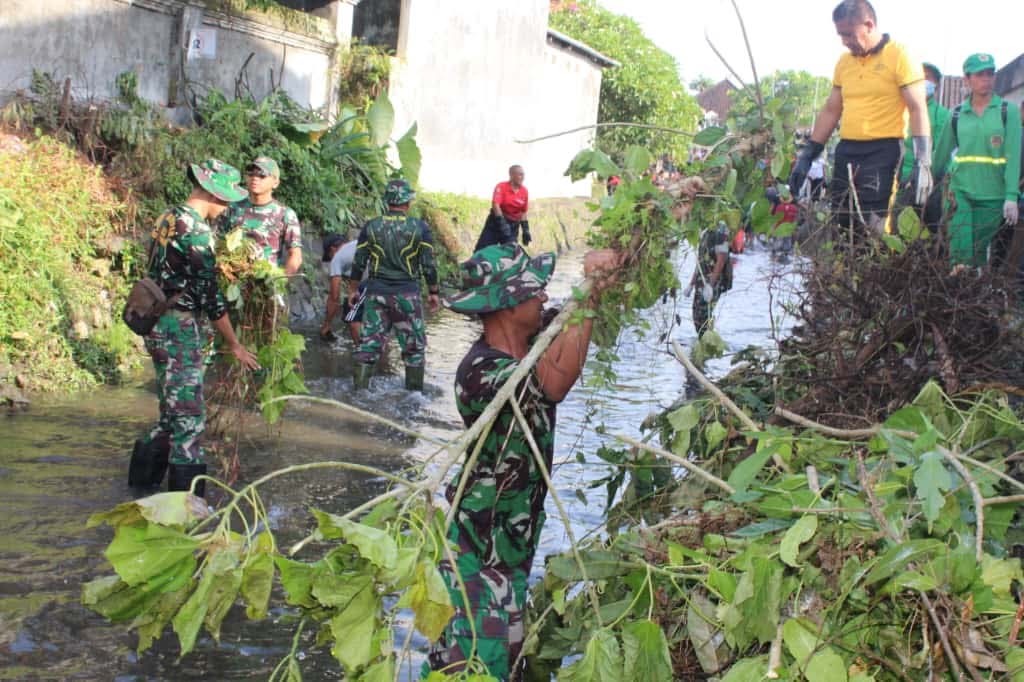 CyberTNI.id | Gianyar, Senin 27 Oktober 2025 – Abianbase, Dalam rangka Gotong Royong Semesta Berencana Bersih-bersih Sungai serta memperingati Rahinan Tumpek Wariga (Wana Kerthi), Kodim 1616/Gianyar dipimpin langsung oleh Dandim 1616/Gianyar Letkol Kav Rizal Wijaya, S.H., M.I.P., bersama unsur Forkopimda Kabupaten Gianyar dan masyarakat melaksanakan kegiatan karya bakti pembersihan sungai di Sungai Bunga, Desa Abianbase, Kelurahan Abianbase, Kecamatan Gianyar, Kabupaten Gianyar. Kegiatan ini menjadi salah satu bentuk nyata kepedulian terhadap lingkungan serta wujud implementasi nilai-nilai “Nangun Sat Kerthi Loka Bali”.