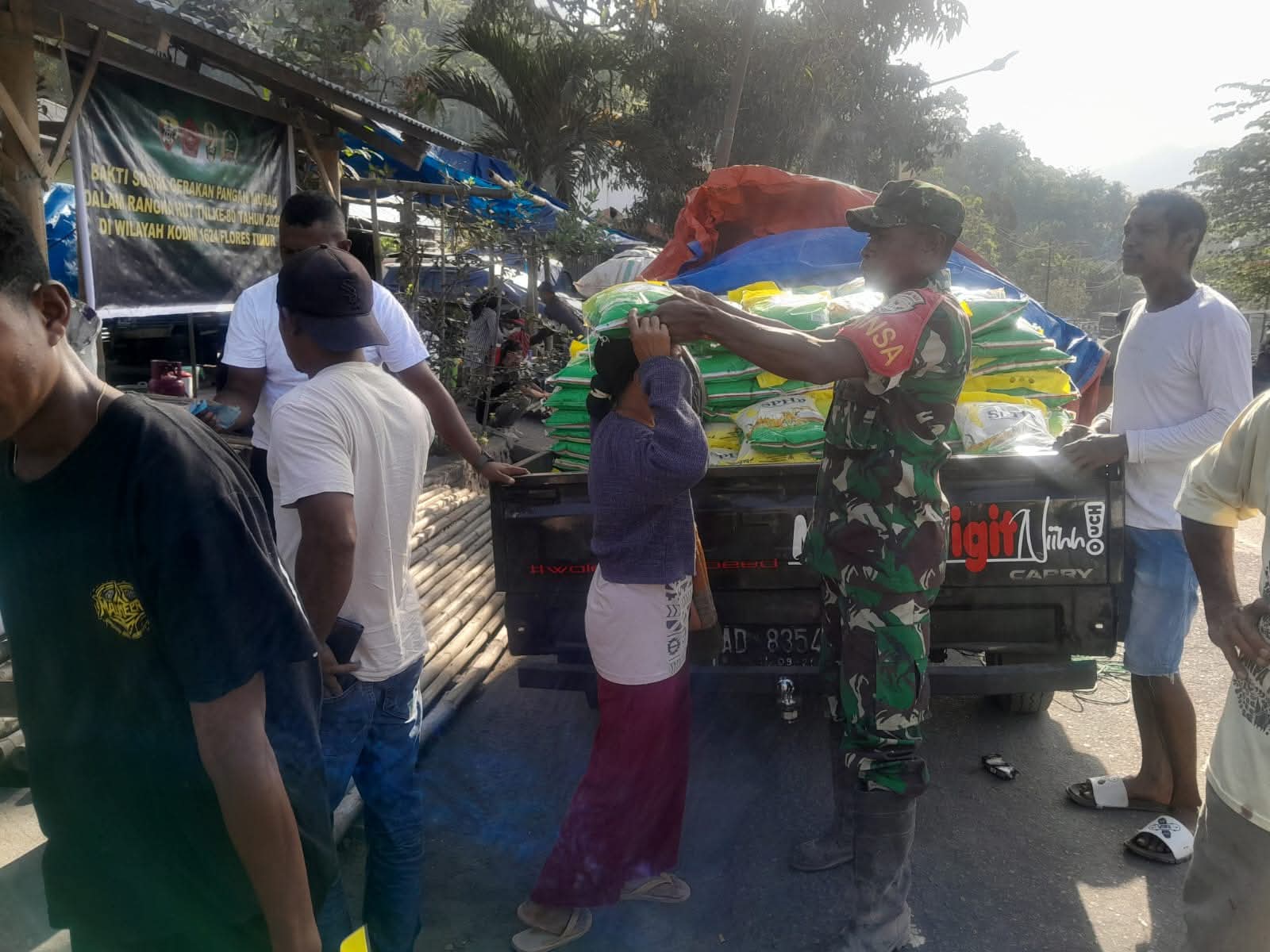 Kegiatan tersebut dipimpin oleh Perwira Seksi Teritorial (Pasi Ter) Kodim 1624/Flotim, Kapten Inf Ismail Ratuloli, bekerja sama dengan Perum Bulog Cabang Flores Timur.