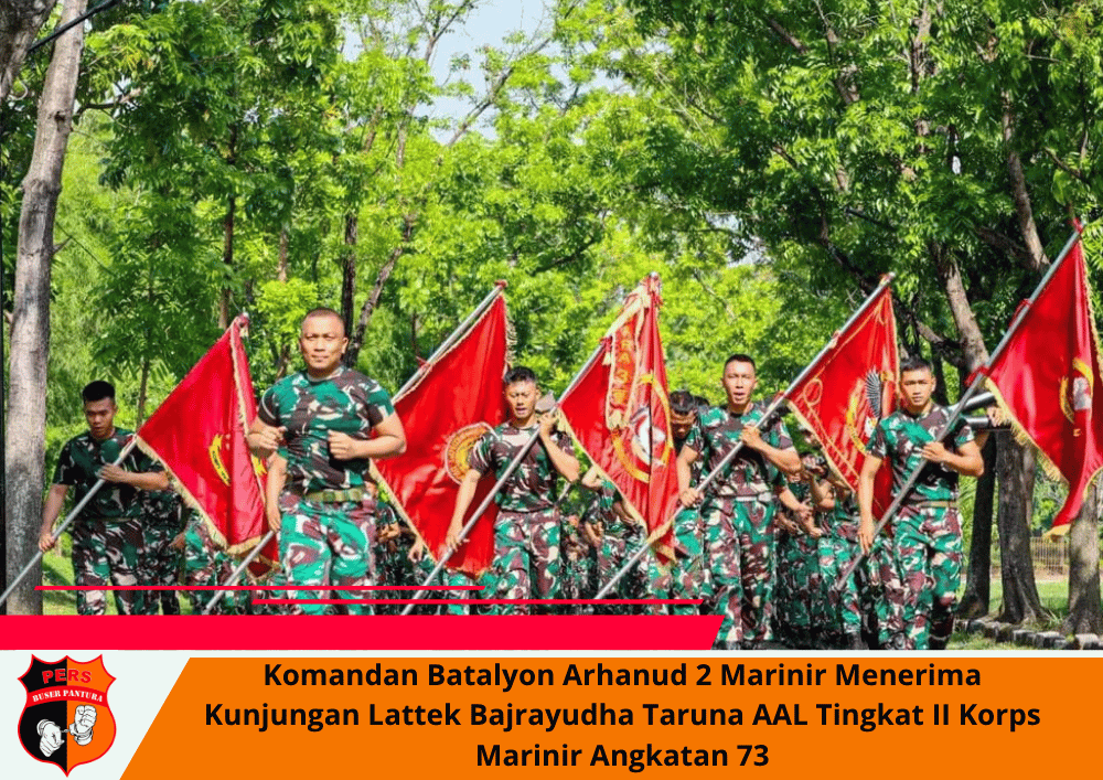 CyberTNI.id | Surabaya, Kamis 23 Oktober 2025 — TNI AL, Dispen Kormar (Surabaya). Danyon Arhanud 2 Marinir Letkol Marinir Rohmad, M. Tr. Opsla menerima kunjungan Lattek Bajrayudha Taruna AAL Tingkat II Korps Marinir Angkatan 73 di Ruang VIP Yon Arhanud 2 Mar, Trian Sutedi Senaputra, Surabaya.