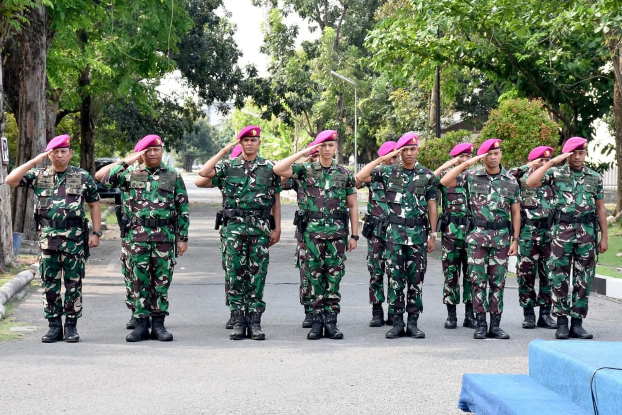 CyberTNI.id | Surabaya, 22 Agustus 2025 — TNI AL, Dispen Kormar (Surabaya). Komandan Batalyon Infanteri 5 Marinir Mayor Marinir Teguh Pristiyanto Dwi S., S.E., M.Tr. Opsla. menerima dan menyambut kedatangan Taruna AAL Tingkat III Angkatan ke-72 Korps Marinir yang melaksanakan Latihan Praktek Pasukan (Lattekpas) di Batalyon Infanteri 5 Marinir Kesatrian Marinir Suroto II Ujung, Semampir, Surabaya, Jawa Timur, Jumat (22/08/2025).