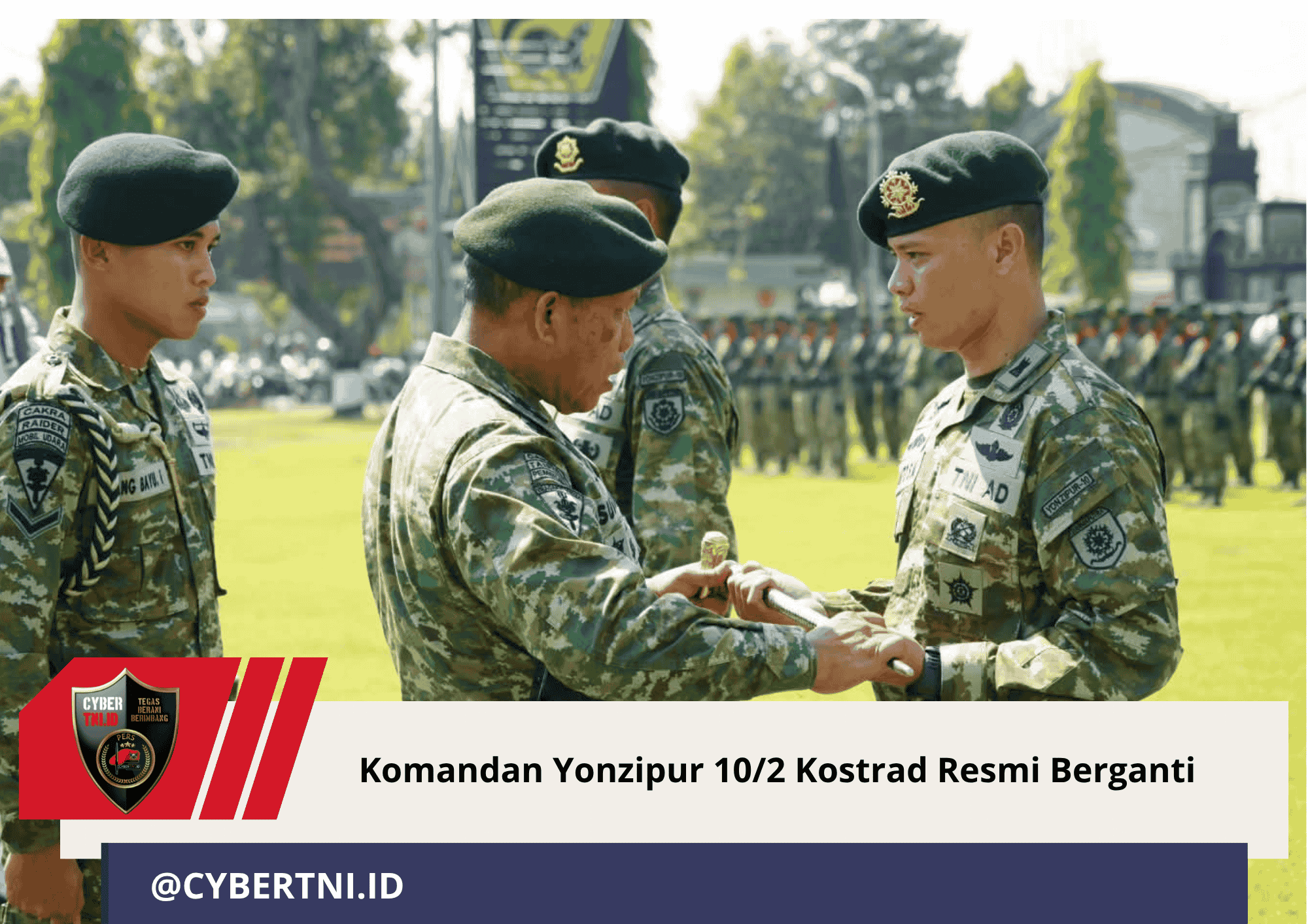 CyberTNI.id | Pasuruan,14 Oktober 2025 — Lapangan Mako Yonzipur 10/Jaladri Palaka menjadi saksi moment bersejarah saat Letkol Czi Bayu Nugroho S. Hub. Int., M.I.P. menyerahkan tongkat komando kepada Letkol Czi Amito Surya M. S.I.P. .I.P. Upacara dipimpin langsung oleh Panglima Divif 2 Kostrad Mayjen TNI Susilo, dalam suasana yang tak hanya khidmat, tapi juga penuh energi dan kebanggaan.