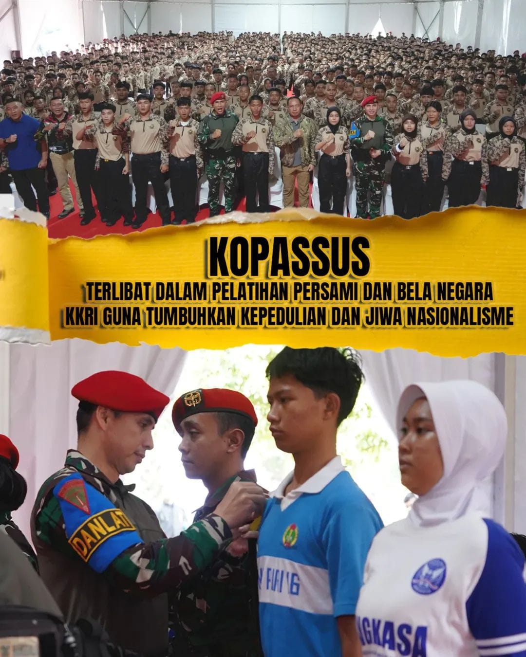 CyberTNI.id | Bogor,Minggu, 21 September 2025 — Komando Pasukan Khusus (Kopassus) terlibat dalam Pelatihan Persami dan Bela Negara Korps Kadet Republik Indonesia (KKRI) gelombang I yang dilaksanakan pada tanggal 20 – 21 September 2025 di wilayah Gunung Salak Bogor-Jabar. Kegiatan ini diikuti oleh siswa/siswi SMK sebanyak 1.000 orang dari wilayah DKI Jakarta dan Bogor Jabar. Pada awal kegiatan pembukaan tersebut para peserta mendapatkan kehormatan kunjungan dan pengarahan langsung dari Panglima TNI tentang pentingnya semangat juang, keteguhan hati dan keyakinan diri serta sebagai generasi penerus bangsa, jangan memandang status dan tidak boleh patah semangat. Dalam Kegiatan ini Panglima TNI dampingi oleh Wakasad, Pangkostrad, Danjen Akademi TNI dan Panglima Kopassus Letjen TNI Djon Afriandi, S.I.P., MS.DA., beserta PJU Kopassus.