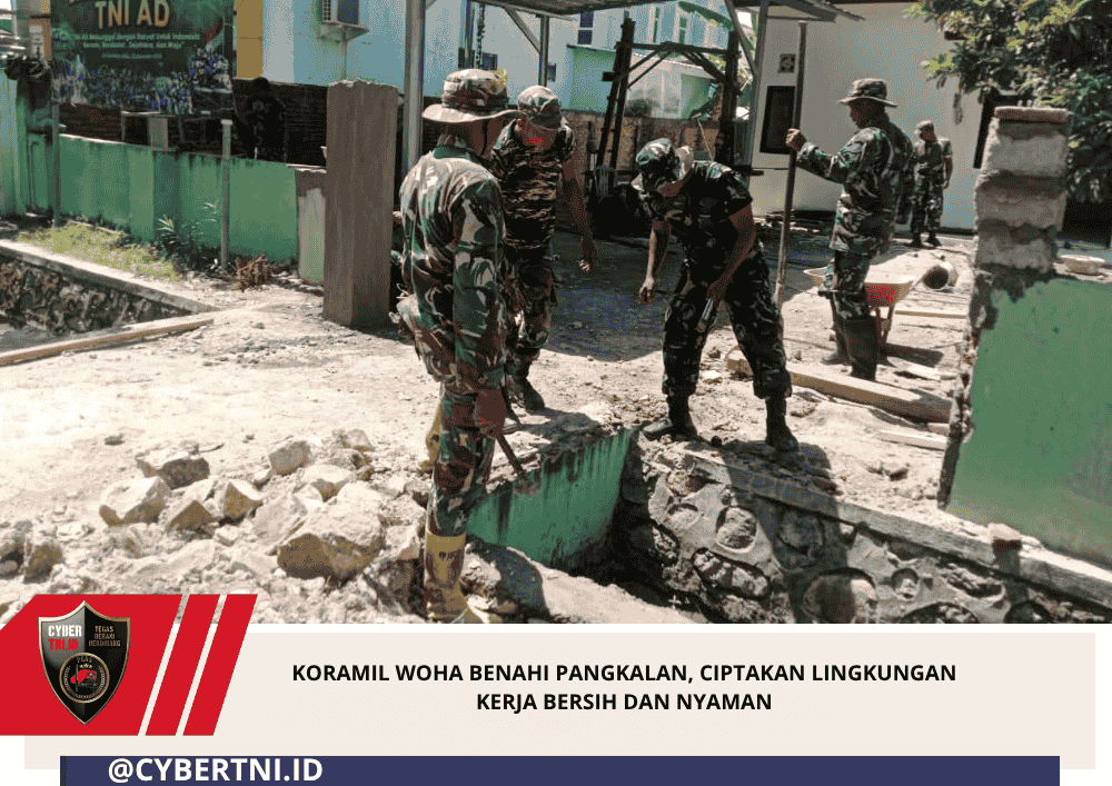 CyberTNI.id | Kabupaten Bima — Koramil 1608-04/Woha menunjukkan komitmennya dalam menciptakan lingkungan kerja yang bersih, rapi, dan nyaman melalui kegiatan pembenahan pangkalan di Makoramil yang berlokasi di Desa Tente, Kecamatan Woha, Kamis (23/04/2026).