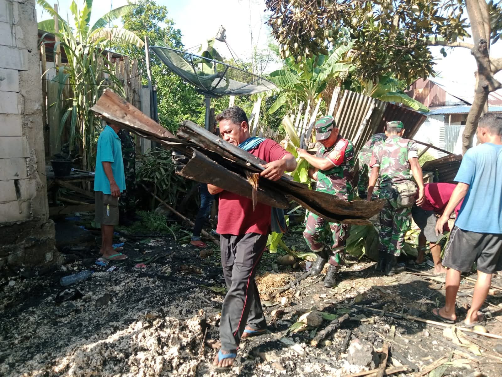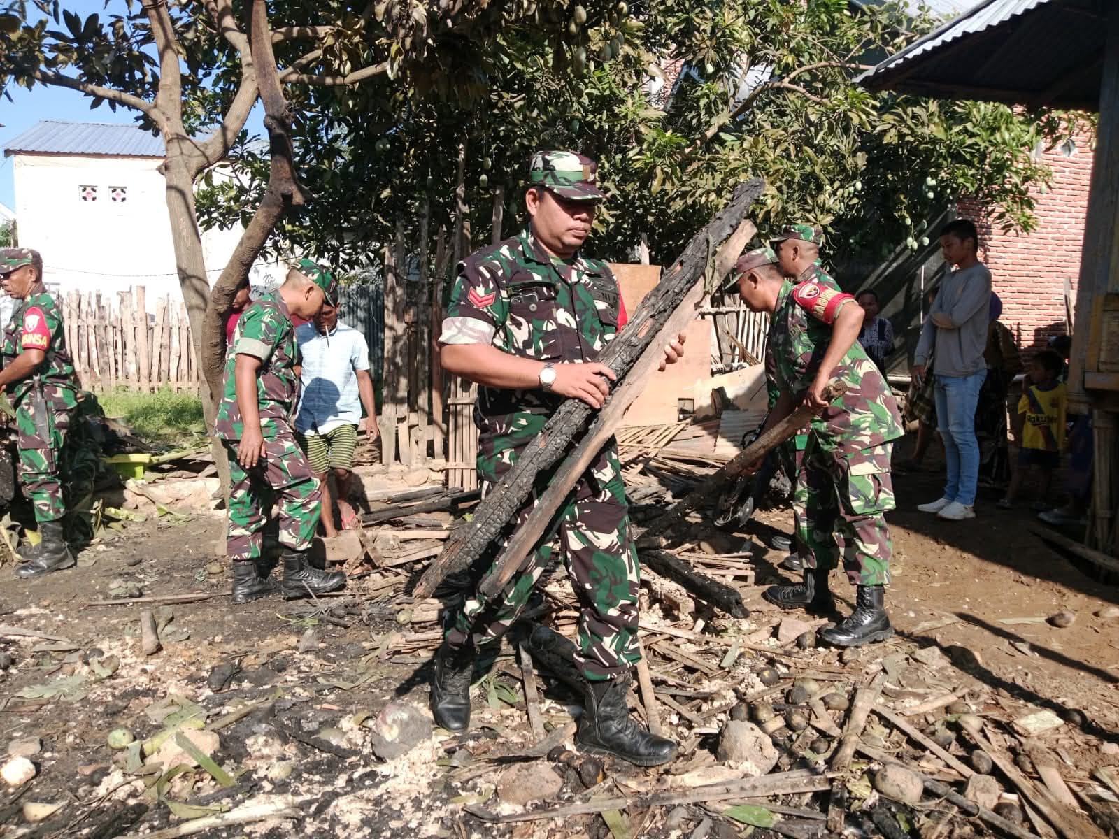 Selain personel Koramil 1608-04/Woha, kegiatan sosial ini juga mendapat dukungan penuh dari warga sekitar yang turut bergotong royong membersihkan puing-puing bangunan yang terbakar.
