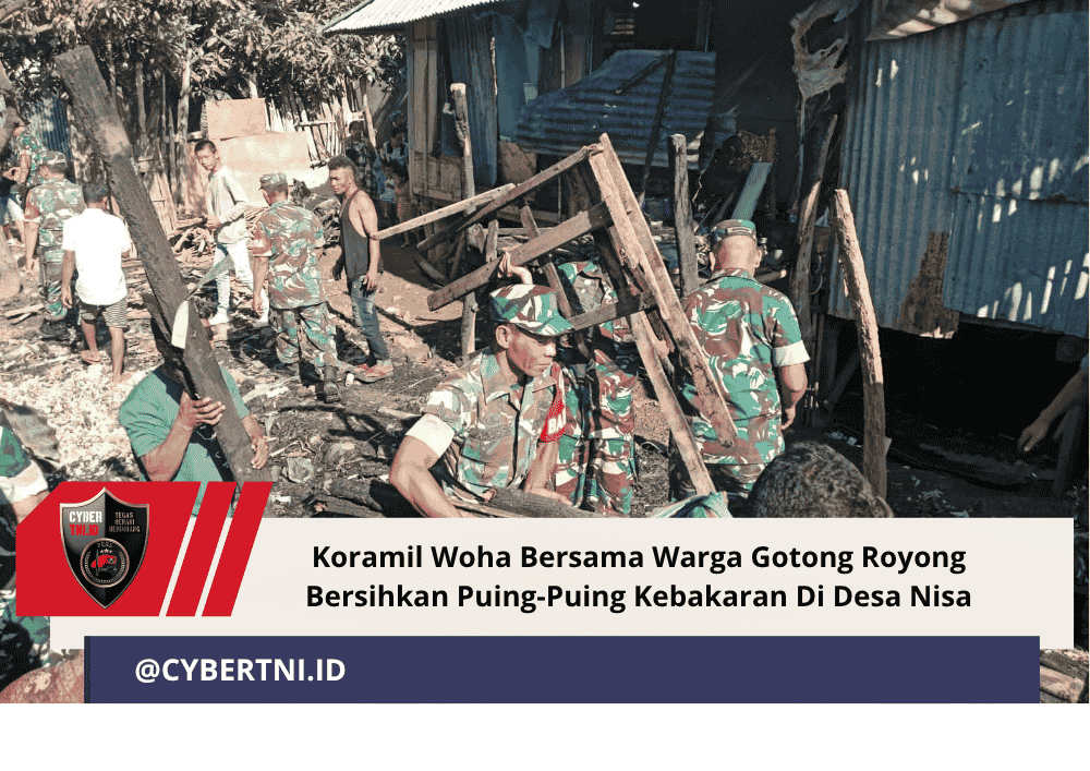 CyberTNI.id | Bima,Rabu 15 Oktober 2025 — Sebagai wujud kepedulian terhadap masyarakat, puluhan personel Koramil 1608-04/Woha Kodim 1608/Bima yang dipimpin langsung oleh Danramil Kapten Cba Iwan Susanto, S.H., melaksanakan kegiatan karya bakti pembersihan puing-puing bekas kebakaran di Dusun Bringin RT 05 RW 02, Desa Nisa, Kecamatan Woha, Kabupaten Bima, Rabu pagi (15/10/2025).