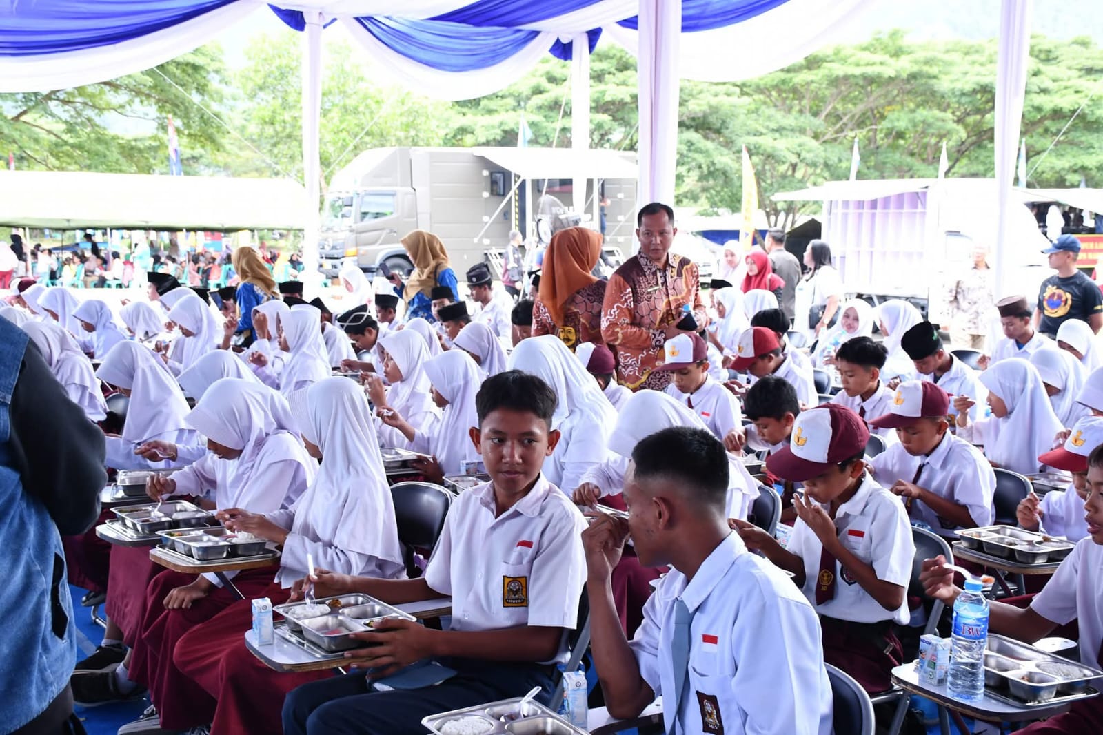 Pada saat yang sama, bakti sosial berupa pemberian makanan bergizi gratis untuk siswa di 4 sekolah menjadi momen yang paling ditunggu. Sebanyak 200 siswa menerima makanan bergizi gratis sebagai upaya peningkatan kualitas gizi anak-anak pesisir. Para prajurit Marinir turut berbaur, membagikan makanan sambil memberikan motivasi dan semangat bagi para siswa agar terus belajar demi masa depan yang lebih baik.