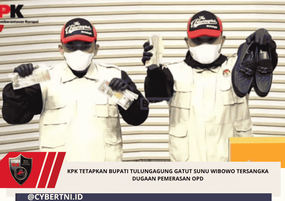 CyberTNI.id|TULUNGAGUNG,Minggu (12/4/2026) — Komisi Pemberantasan Korupsi (KPK) menetapkan Bupati Tulungagung periode 2025-2030, Gatut Sunu Wibowo (GSW), beserta ajudannya, Dwi Yoga Ambal (YOG), sebagai tersangka terkait dugaan pemerasan terhadap Kepala Organisasi Perangkat Daerah (OPD).