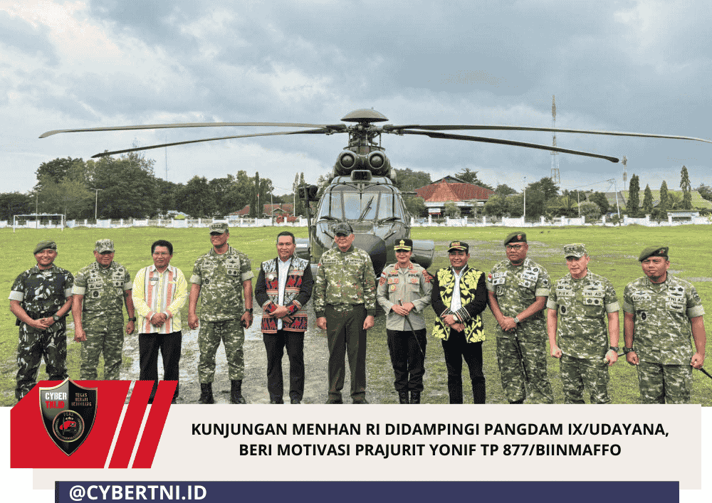CyberTNI.id | TTU, NTT – Panglima Kodam IX/Udayana Mayjen TNI Piek Budyakto mendampingi Menteri Pertahanan Republik Indonesia, Jenderal TNI (Purn) Sjafrie Sjamsoeddin, dalam kunjungan kerja ke Batalyon Infanteri Teritorial Pembangunan (Yonif TP) 877/Biinmaffo, Kabupaten Timor Tengah Utara (TTU), Provinsi Nusa Tenggara Timur, Jumat (23/1/2026).