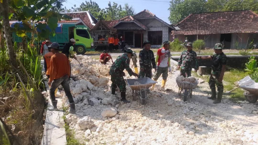 Danramil 13/Kunduran Kapten Inf Subeno menjelaskan bahwa kegiatan langsir batu dilakukan oleh personel Satgas TMMD bersama warga secara bergantian menggunakan arco atau gerobak dorong. Material tersebut kemudian disalurkan ke titik kerja tempat tukang memasang batu.