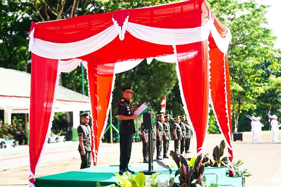 CyberTNI.id | Jayapura,Sabtu 13 September 2025 — Upacara penutupan pendidikan pertama sekolah calon Tantama berlangsung khidmat dipimpin langsung oleh Pangdam XVII/Cenderawasih Mayjen TNI Amrin Ibrahim, S.I.P didampingi Ketua Persit Kartika Chandara Kirana Daerah XVII/Cenderawasih Ny. Surry Amrin Ibrahim, bertempat di Lapangan Pancasila Rindam XVII/Cenderawasih, Sentani, Kabupaten Jayapura, Sabtu (13/9/2025).