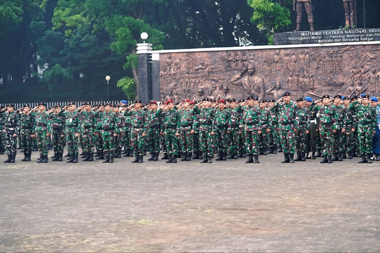 CyberTNI.id |Jakarta, Rabu 17 September 2025 —Markas Besar Tentara Nasional Indonesia (Mabes TNI) melaksanakan Upacara Bendera 17-an bulan September 2025 di Lapangan Gedung B3, Cilangkap, Jakarta Timur, Rabu (17/9/2025). Upacara tersebut dipimpin oleh Wakil Asisten Kebijakan Strategis dan Perencanaan Umum (Waasrenum) Panglima TNI, Mayjen TNI Harvin Kidingallo, S.H., S.T., M.Han., dan diikuti oleh para prajurit serta Pegawai Negeri Sipil (PNS) di lingkungan Mabes TNI.
