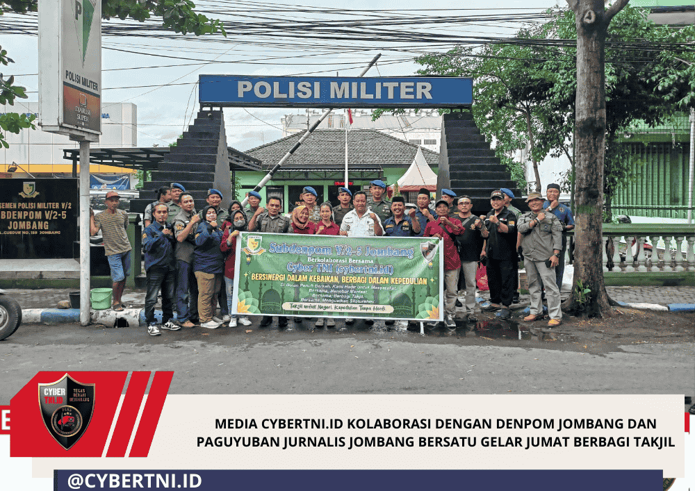 CyberTNI.id | JOMBANG – Semangat kepedulian dan sinergitas antar elemen kembali ditunjukkan oleh Media CyberTNI.id bersama Subdenpom V/2-5 Jombang dan Paguyuban Jurnalis Jombang Bersatu (JJB) melalui kegiatan Jumat Berbagi Takjil, Jumat (27/02/2026).