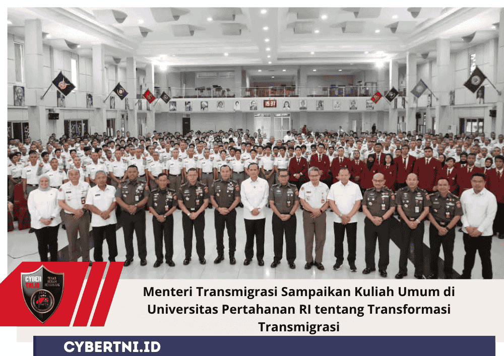 CyberTNI.id | Bogor, Senin 27 Oktober 2025 — Rektor Universitas Pertahanan Republik Indonesia (Unhan RI), Letnan Jenderal TNI (Purn.) Dr. Anton Nugroho, M.M.D.S., M.A., diwakili oleh Wakil Rektor Bidang Akademik dan Perencanaan Unhan RI, Mayor Jenderal TNI Dr. R. Nugraha Gumilar, M.Sc., menerima langsung kehadiran Menteri Transmigrasi Republik Indonesia (Mentrans RI), Dr. H. Muhammad Iftitah Sulaiman Suryanagara, S.H., M.Si. dalam rangka kegiatan kuliah umum kepada sivitas akademika Unhan RI.