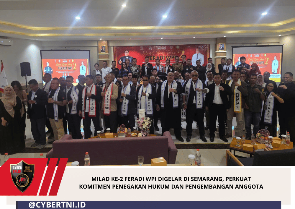 CyberTNI.id | SEMARANG – Organisasi advokat dan paralegal FERADI WPI menggelar perayaan Hari Ulang Tahun (HUT) ke-2 pada Sabtu, 18 April 2026, di Hall Lantai 3 Hotel Trizz, Kota Semarang. Kegiatan ini dihadiri oleh anggota FERADI WPI yang terdiri atas advokat dan asisten advokat dari berbagai kota di Indonesia, dengan suasana meriah yang menyelimuti seluruh rangkaian acara.