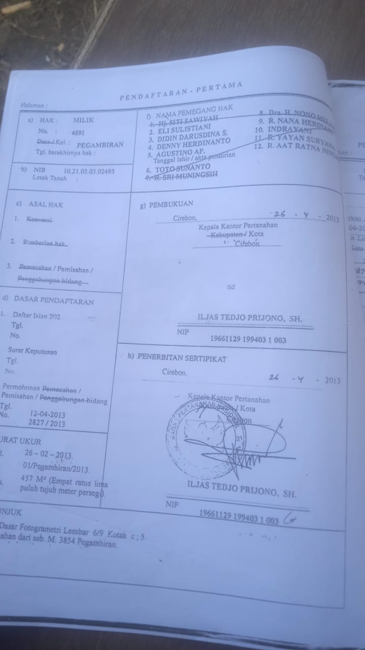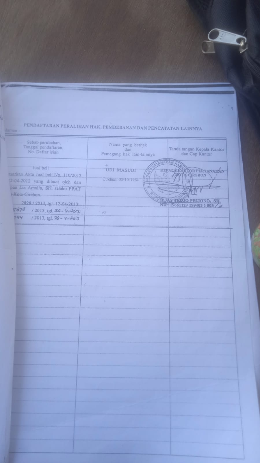 Namun, secara mengejutkan, tanah milik keluarga tersebut yang tercatat dalam Sertifikat Hak Milik (SHM) Nomor 3854/Pegambiran, NIB 1021030101050, dengan Surat Ukur Nomor 37/Kelurahan Pegambiran, Kecamatan Lemahwungkuk, Kota Cirebon seluas 450 meter persegi, telah beralih nama menjadi atas nama Udi Masudi. Proses peralihan hak itu diduga kuat menggunakan surat kuasa palsu yang dibuat oleh Notaris SM, serta diperkuat dengan Akta Jual Beli (AJB) yang disahkan oleh Notaris/PPAT berinisial L.A. yang berkantor di Kota Cirebon.