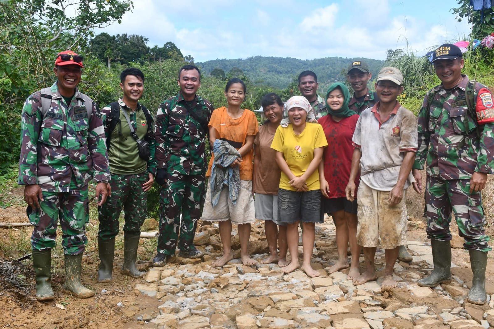 Dengan mengusung semangat gotong royong, personel TNI bersama masyarakat setempat bahu-membahu melakukan peningkatan badan jalan. Material pengerasan didatangkan dari luar desa, alat berat dikerahkan, serta sistem drainase jalan mulai dibenahi.