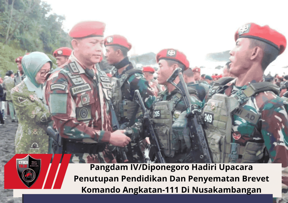 CyberTNI.id | Cilacap, Kamis 30 Oktober 2025 – Pangdam IV/Diponegoro Mayjen TNI Achiruddin, S.E., M.Han. menghadiri Upacara Penutupan Pendidikan dan Penyematan Brevet Komando Angkatan-111 Tahun Ajaran 2025 yang digelar di Pantai Permisan, Nusakambangan, Kabupaten Cilacap, Kamis (30/10/2025).