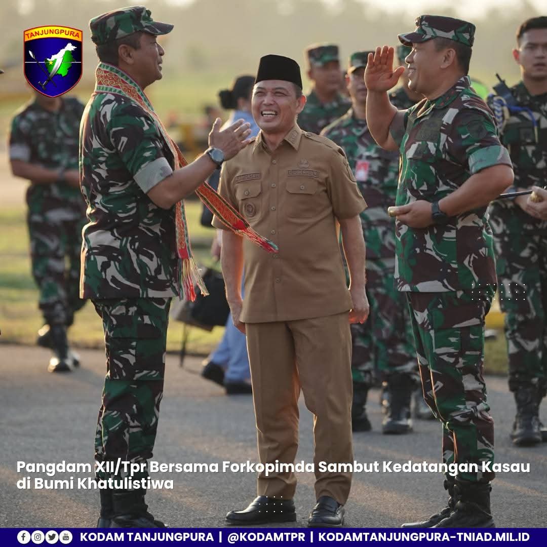 CyberTNI.id | Kubu Raya,Selasa 23 September 2025 — Pangdam XII/Tanjungpura Mayjen TNI Jamallulael, S.Sos., M.Si., menyambut kedatangan Kepala Staf Angkatan Udara (Kasau) Marsekal TNI M. Tonny Harjono, S.E., M.M., saat tiba di Apron Lanud Supadio, Kubu Raya, Kalimantan Barat, Selasa (23/9/2025).