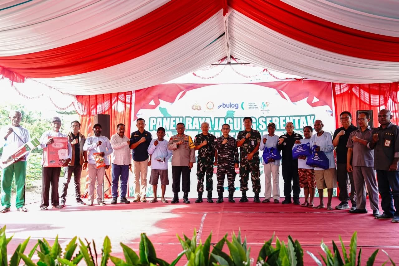 CyberTNI.id | Jayapura, Sabtu 27 September 2025 — Panglima Komando Daerah Militer (Pangdam) XVII/Cenderawasih Mayjen TNI Amrin Ibrahim, S.I.P, menghadiri kegiatan Panen Raya Jagung Serentak dalam rangka Mendukung Swasembada Pangan yang dipimpin oleh Irjen Pol Petrus Patrige Rudolf Renwarin, S.H., M.Si. (Kapolda Papua), bertempat di Kampung Aib, Distrik Kemtuk, Kabupaten Jayapura, Sabtu (27/9/2025).