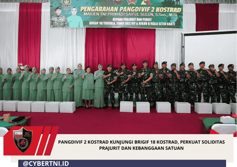 CyberTNI.id | Malang – Panglima Divisi Infanteri 2 Kostrad, Primadi Saiful Sulun melaksanakan kunjungan kerja ke Brigif 18/Trisula yang berlangsung penuh keakraban dan semangat kebersamaan. Kunjungan ini bukan sekadar agenda rutin, tetapi menjadi momentum penting untuk memperkuat soliditas prajurit sekaligus menumbuhkan kebanggaan terhadap satuan. Malang, Kamis (12/3/2026).