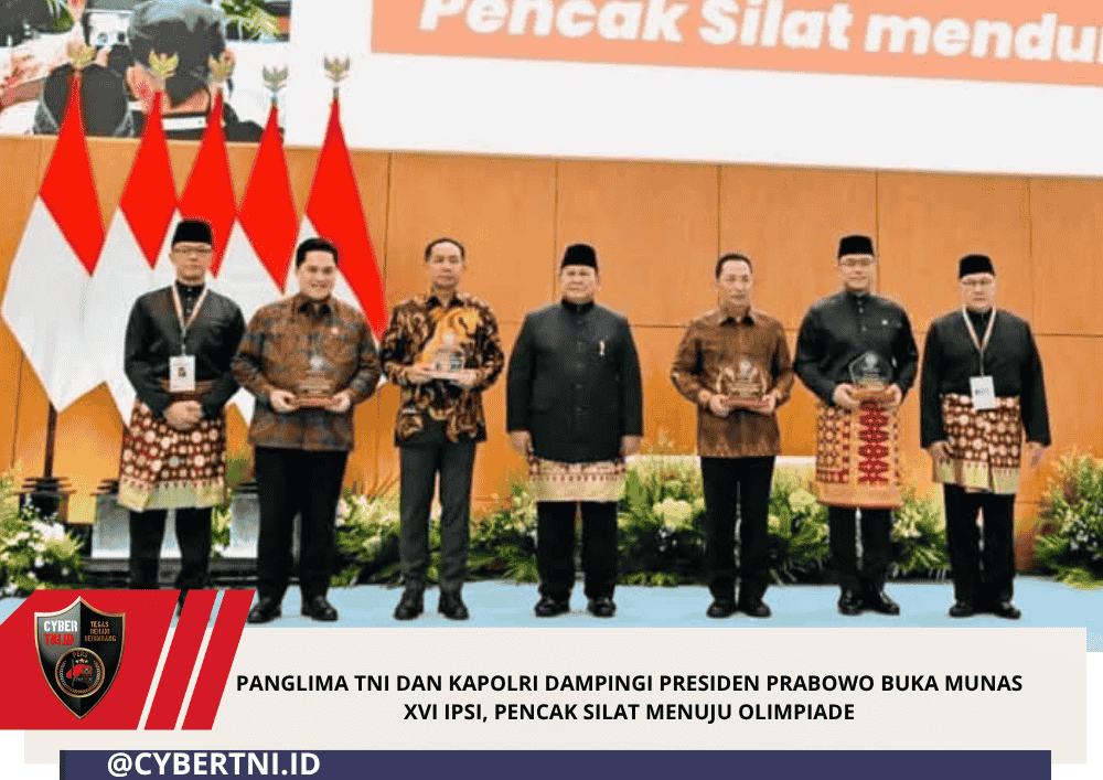 CyberTNI.id|JAKARTA,Sabtu (11/4/2026) —Panglima TNI Jenderal TNI Agus Subiyanto dan Kapolri LSP mendampingi Presiden RI Prabowo Subianto yang juga menjabat sebagai Ketua Umum (Ketum) PB Ikatan Pencak Silat Indonesia (IPSI) pada acara pembukaan Musyawarah Nasional (Munas) XVI IPSI Masa Bakti 2026–2030 bertema “Pencak Silat Mendunia Menuju Olimpiade” yg digelar di Ruang Cendrawasih Jakarta International Convention Center (JICC), Jakarta Pusat,