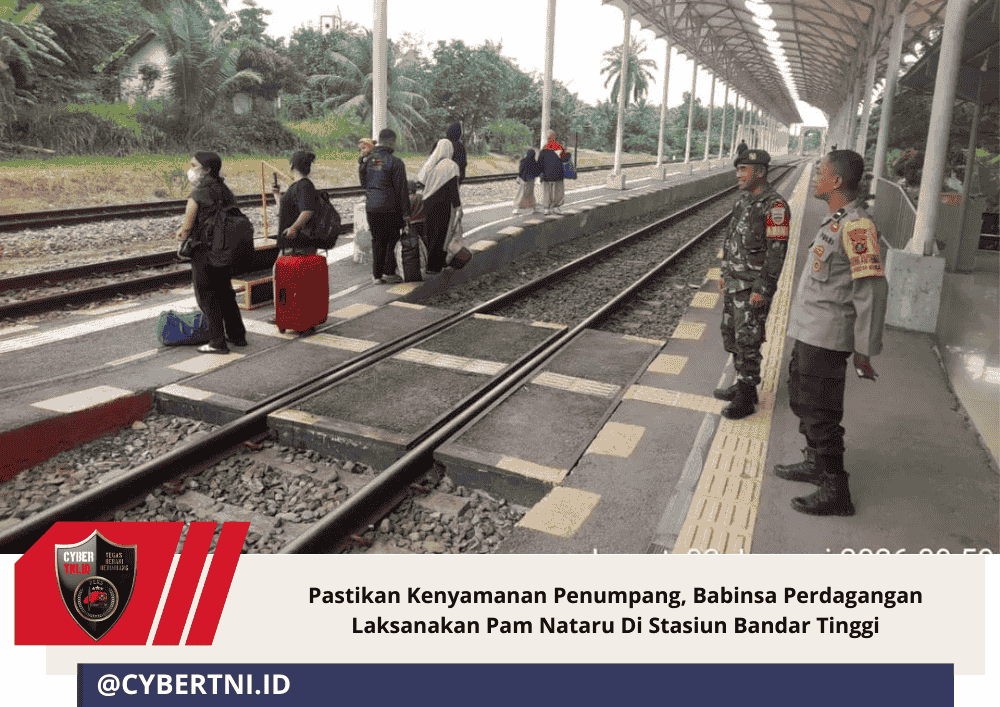 CyberTNI.id |Simalungun, Jumat 2 Januari 2026 – Dalam rangka memberikan rasa aman dan nyaman kepada masyarakat selama arus libur Natal dan Tahun Baru 2025–2026, Babinsa Koramil 06/Perdagangan Kodim 0207/Simalungun, Sertu Sutikno, melaksanakan kegiatan pengamanan (Pam) Nataru di Stasiun Kereta Api Bandar Tinggi, Kecamatan Bandar Masilam, Kabupaten Simalungun, pada Jumat (02/01/2026).