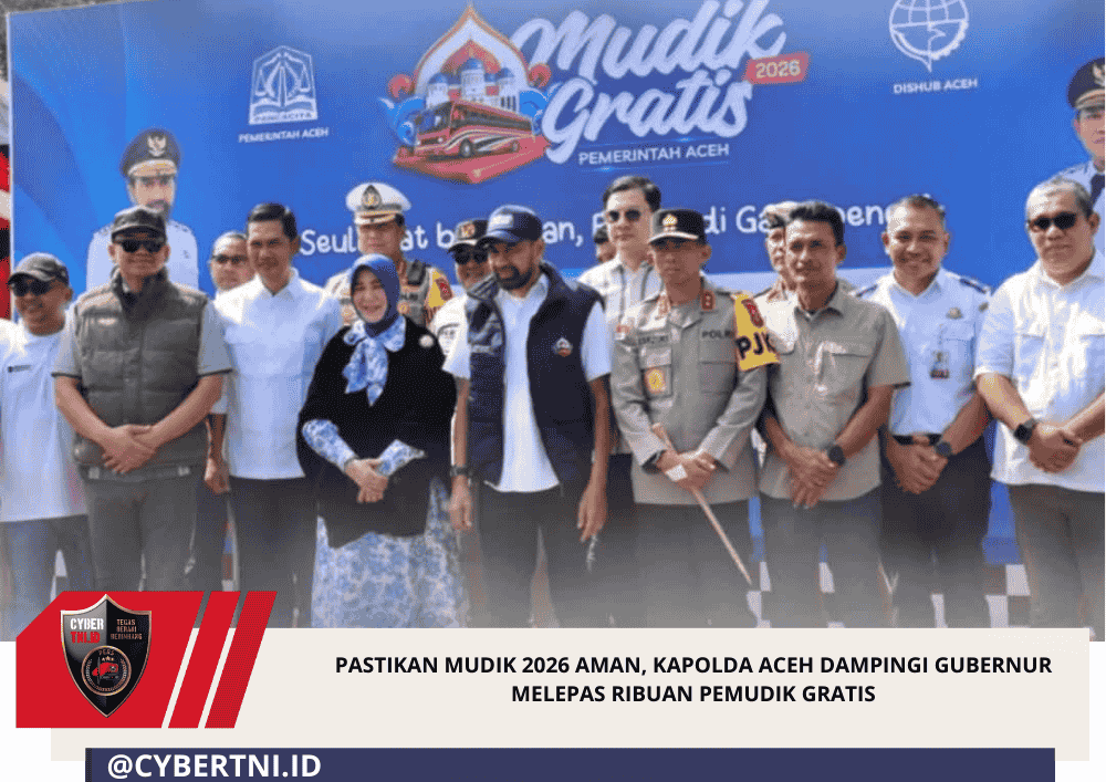 CyberTNI.id | Banda Aceh – Unsur Forum Koordinasi Pimpinan Daerah (Forkopimda) Aceh menghadiri sekaligus melepas peserta Program Mudik Gratis Pemerintah Aceh Tahun 2026 yang berlangsung di Depo Angkutan Massal Transkutaraja, Komplek Terminal Tipe A Batoh, Banda Aceh, Minggu, 15 Maret 2026 pagi.